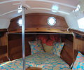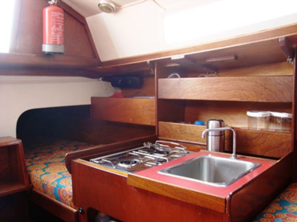 Waarschip 725, sportlich und herausragend segelnde Yacht. Schön ausgeführt mit lackierten Mahagoni-Bauteilen, sehr gut gepflegt, berühmt für Fahrt- und Segeleigenschaften. Ähnlich komfortabel wie eine Valk zu segeln. Unter Deck herrscht gemütliche maritime Atmosphäre bei einer Höhe von 1,45 m. In der Kajüte befindet sich unterhalb der Cockpitbänke je ein Bett; die Toilette ist unter dem Cockpitboden. Die Kombüse mit zweiflammigem Kocher und Kartentafel ist mittschiffs. Im Vorschiff ein Bett für zwei Personen, ein 4-Takt-Außenborder mit 6 PS, Rollfock, Kochausrüstung und Geschirr, Wassertank, Chemietoilette, Schwimmwesten, Seekarten und der Wassersport-Almanach Band 1 & 2 des Niederländischen Fremdenverkehrsbundes. 230V-Wandsteckdose, Akku mit elektronischem Ladegerät, Radio und Anker. Die Segel-Ausrüstung mit Rollfock passt hervorragend zum niederländischen Klima und den Wetterbedingungen auf dem IJsselmeer. Segelkleidung und Bettwäsche ist optional zumietbar.